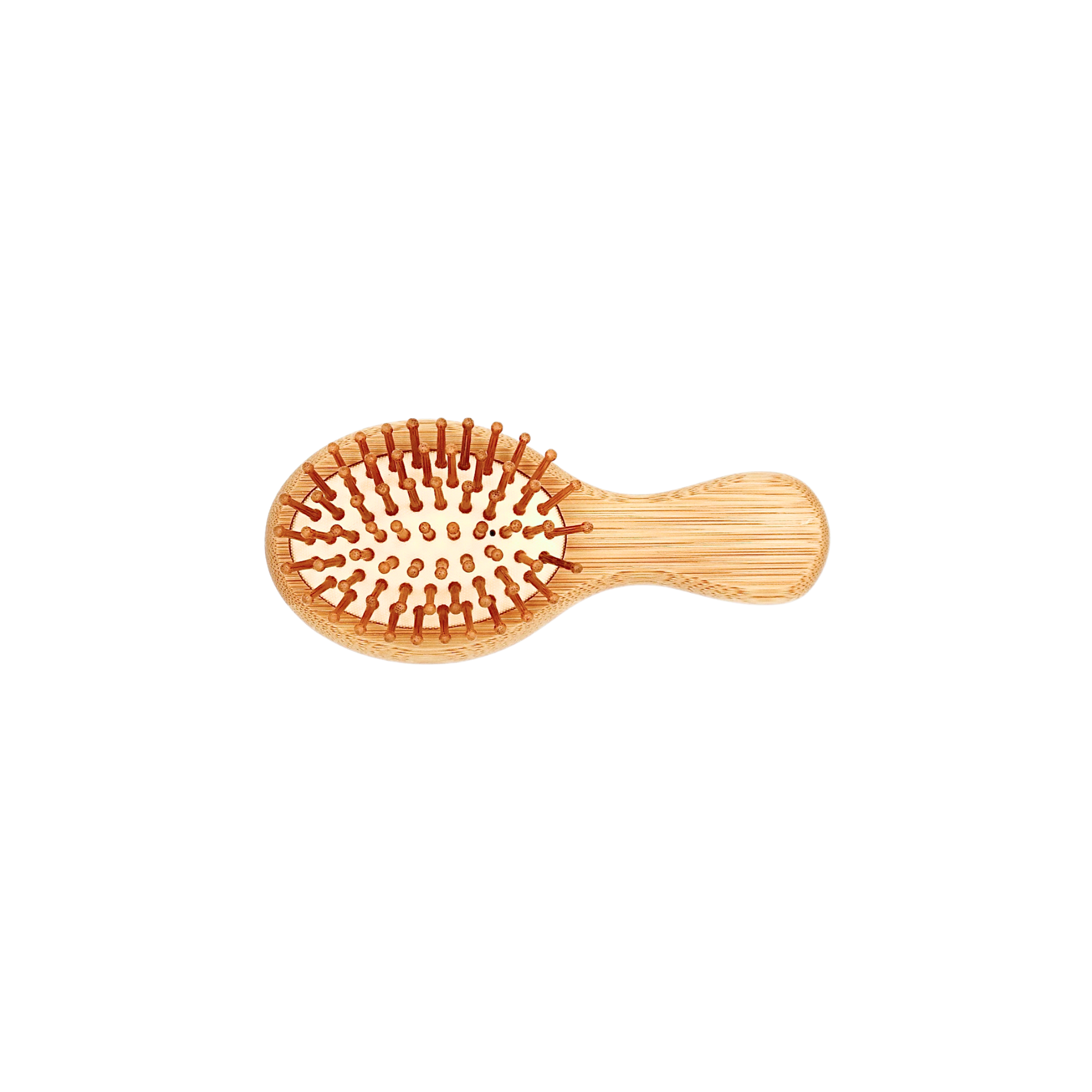 Elevate your hair care routine with our eco-friendly, pure bamboo mini hairbrush, a plastic-free and sustainable alternative to ordinary brushes. Perfectly compact and travel-ready, this brush is designed to glide effortlessly through your hair, helping to distribute natural oils evenly. The perfect companion for effortless hair care, both at home and on the go, it leaves your hair smoother, shinier, and healthier with every stroke.